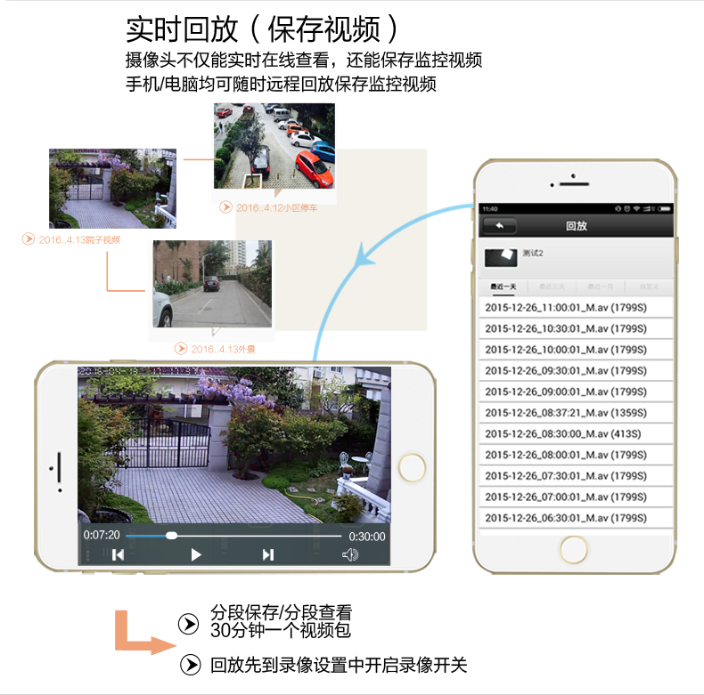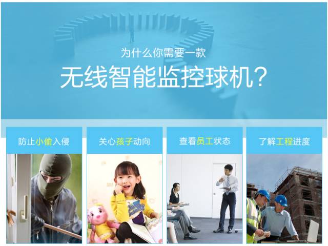 支持移动侦测报警,时刻关注家庭安全, 图像压缩比例高,远程监控清晰。